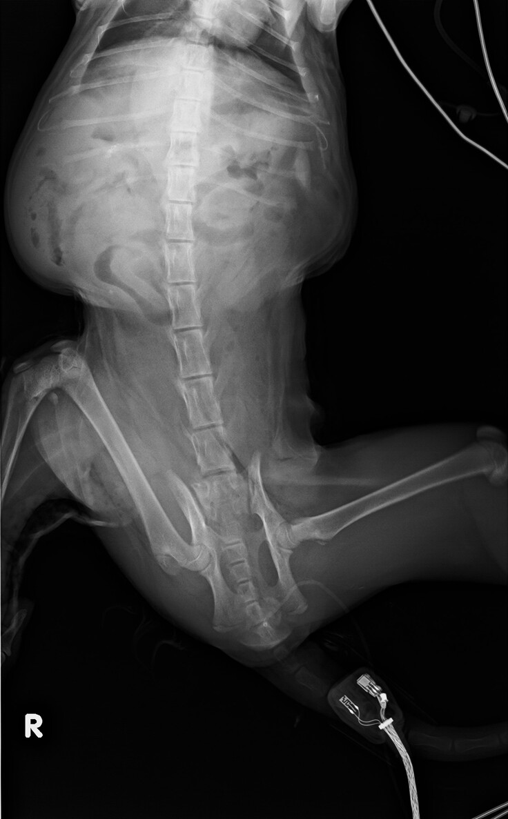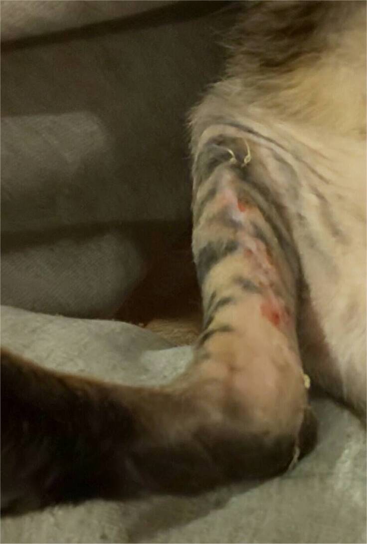 下半身を強くぶつけたようで、膀胱と右後ろ脚に大きなダメージがあり、手術が必要でした。