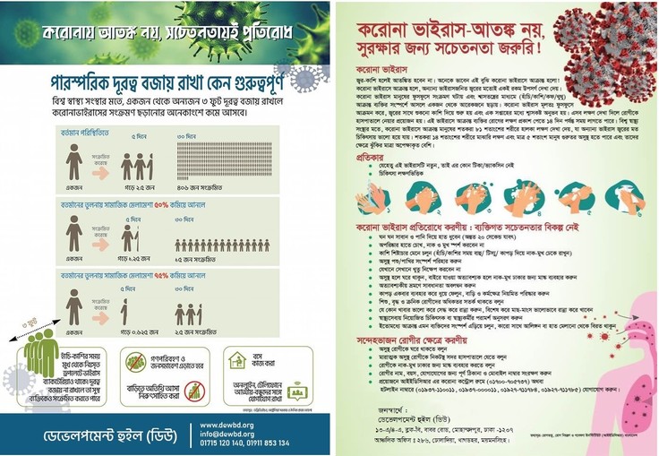 また、デュー・クラフトでは、コロナウイルス感染防止や正しい手洗い、ソーシャルディスタンスの方法など記載したパンフレット作成し、地域に向けた啓蒙も行っています。