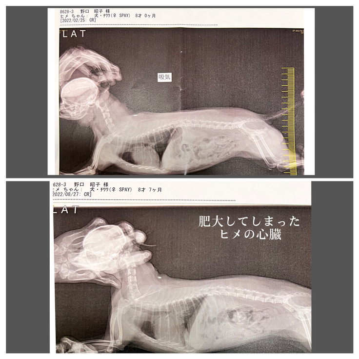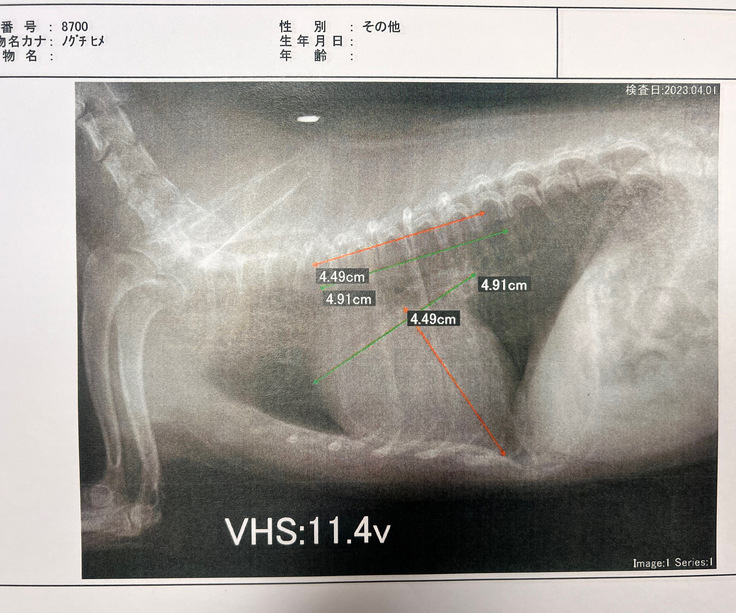 VHSは主治医のお話ですと通常の数値は10.4ほどのようですが、ヒメは心臓が肥大しているため11.4という数値になっています。もう外科手術が必要なレベルだと言われました。