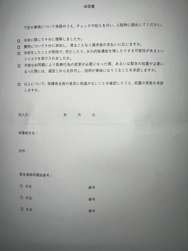 先生からは、術後の合併症になることもあり手術をする事にリスクがあることもうかがいました。