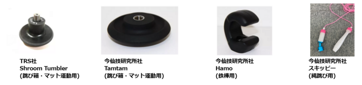 そのため、2018年、国産のマット・跳び箱用手先具「タムタム」と鉄棒用手先具「アーモ」、そして、2023年には縄跳び用「スキッピー」を開発しました。