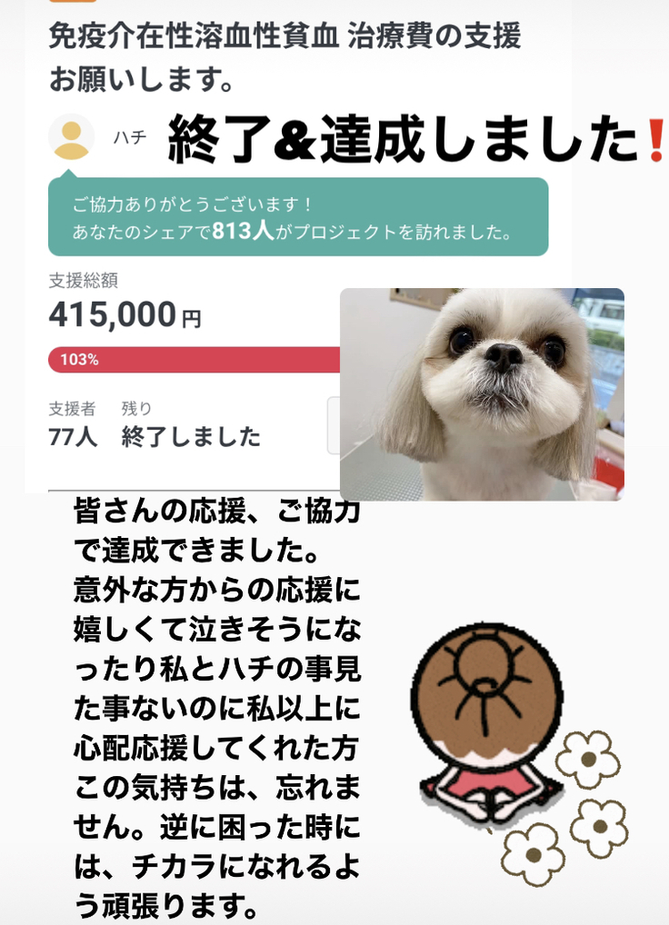 頂いた支援金は、全て治療費に使用させて頂きます。