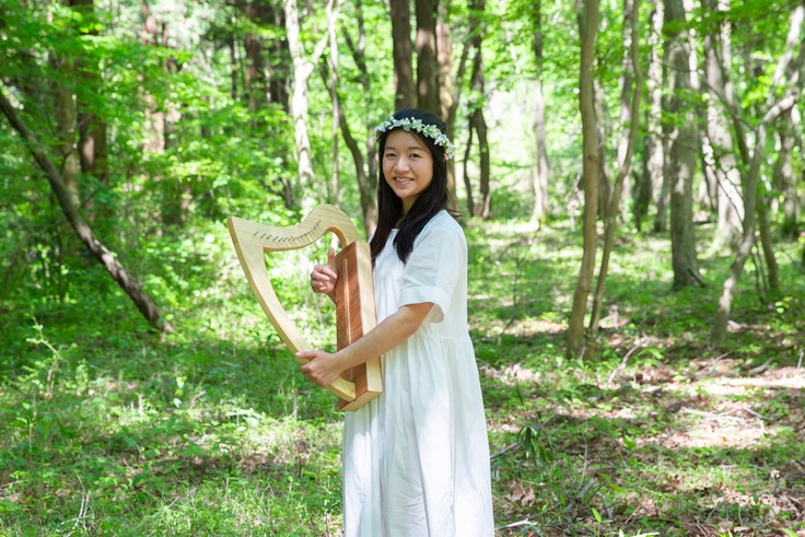 森の中でハープを演奏するイベントの実績もあります。