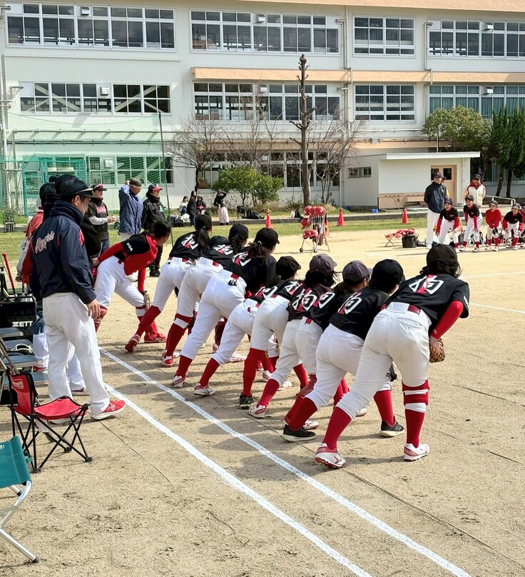 寝屋川市の「田井ブレイクス」と「レッドガールズ」の2チームに、今年は交野市の「妙見坂ベアーズ」も加わり合同で結成しているチームです。