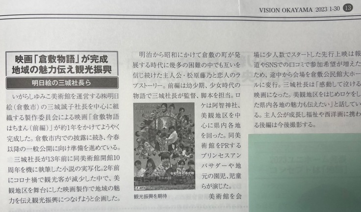 「倉敷物語はちまん」を子供達と映画にして倉敷の美と歴史を世界に発信
