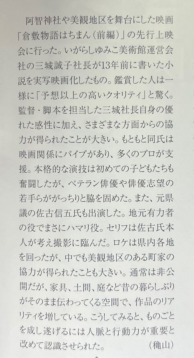 今回の実写映画化のプロジェクトの、私のスマホで作るという最初の試みを遥に超え、思いもよらない撮影スタッフや俳優の方々も集まり、出演者の皆さまも倉敷、岡山のため尽力したいと県外からも集まってくださいました。