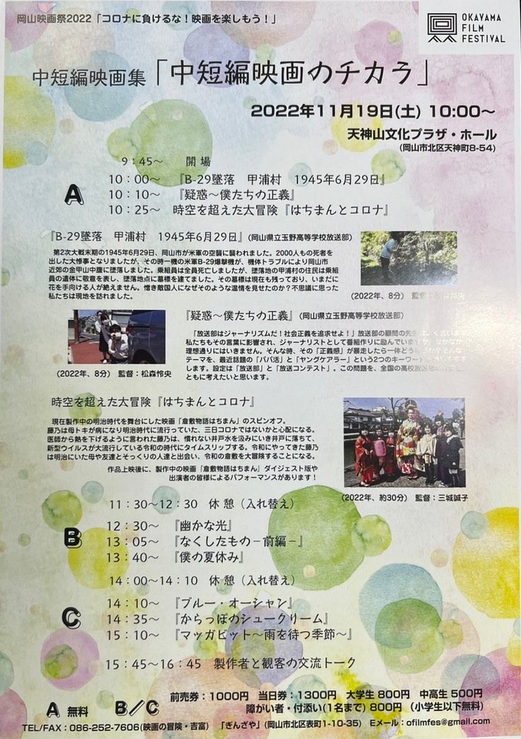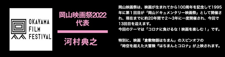 「時空を超えた大冒険はちまんとコロナ」初めての映画作品になりました。令和4年11月にはこの作品を、岡山映画祭で上映させて頂きました。