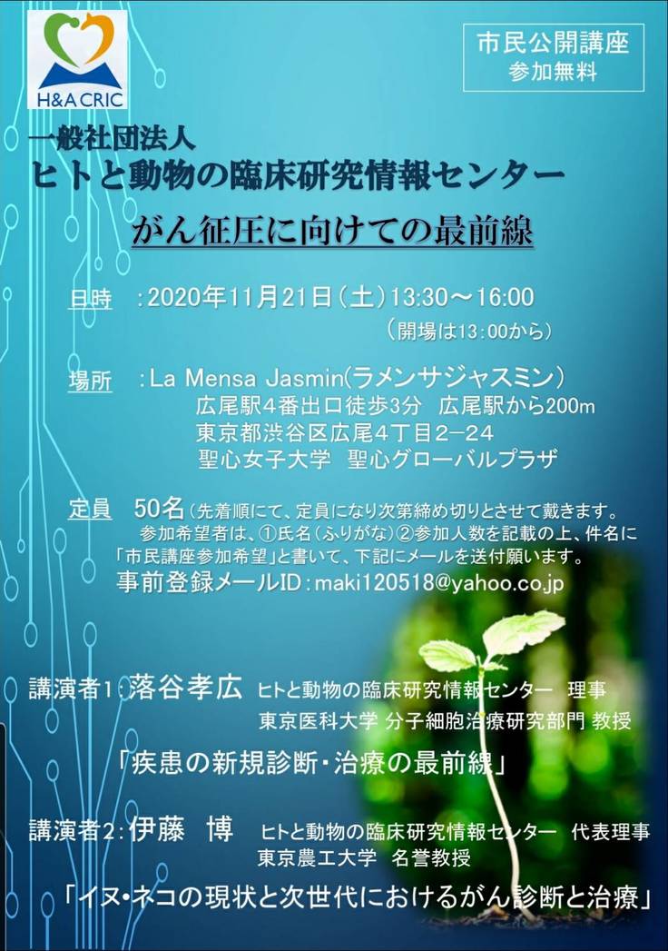 11月21日(土) 市民公開講座 開催@渋谷区広尾