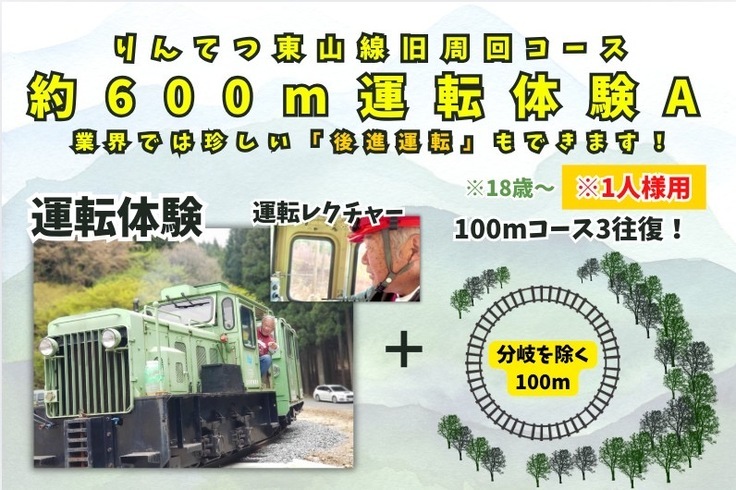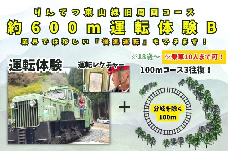 ①波賀森林鉄道東山線旧周回コース(片道100m)往復3回約600m運転体験A