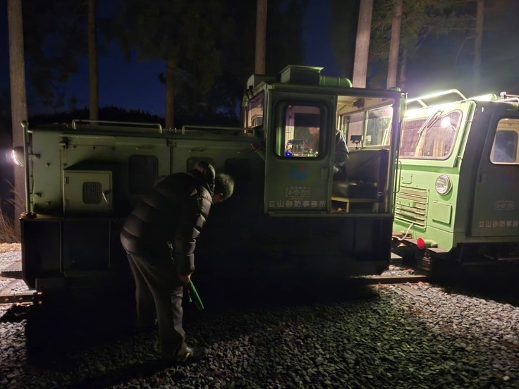 波賀森林鉄道ですが、現在走行している場所には、電気がありません。そうです。夜になると真っ暗になるんです。こんな感じに。