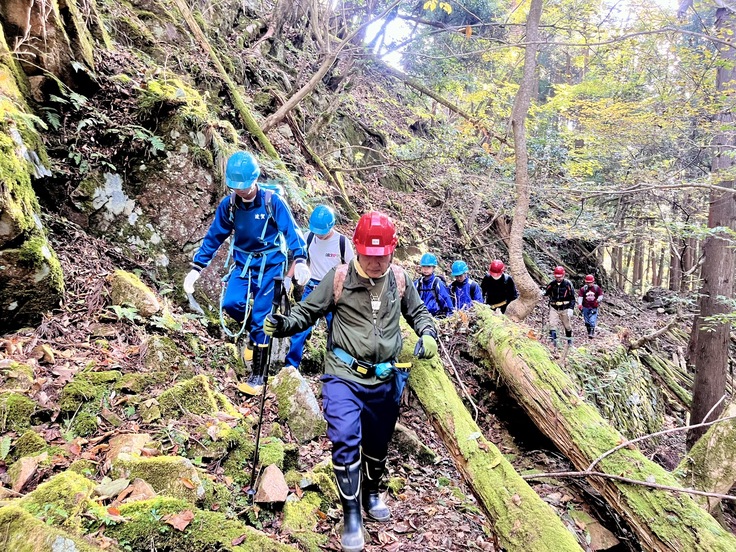 (地元中学校の中音水遺構ウォーキングの様子)