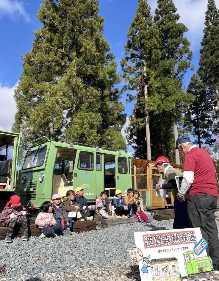 波賀森林鉄道チームでは、波賀の歴史を未来へ繋げるため、地元の幼稚園・保育園や小中学生への『林鉄講座&乗車体験』を実施しています。
