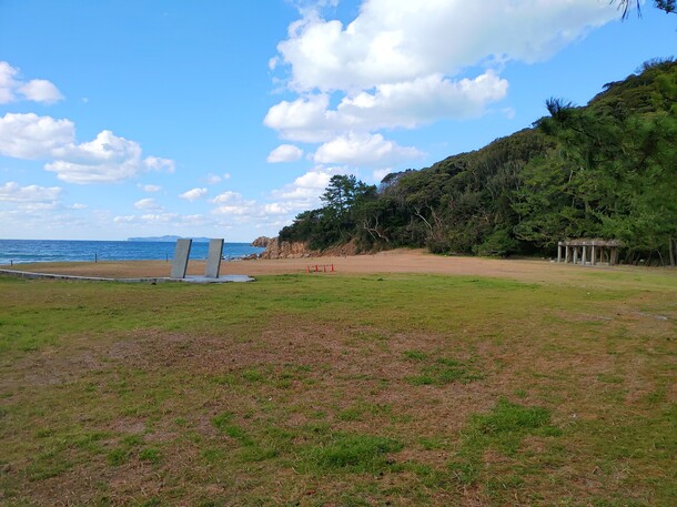 予定していた小浜キャンプ場跡が難しそうなので、すぐ近くの石彫公園を借りる予定です。こちらも、海と松林がある素敵な公園です!