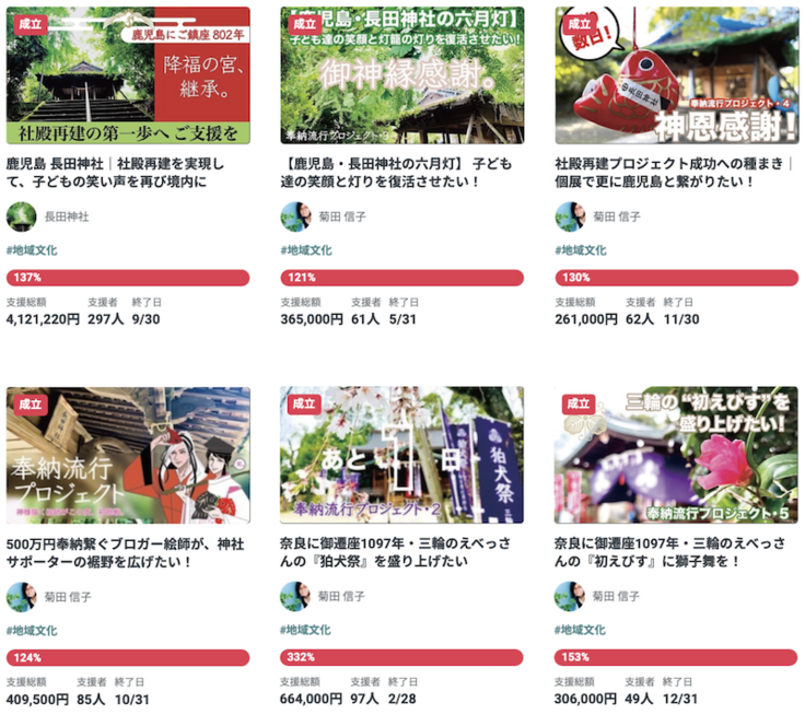 元々は神社紹介ブログの企画で神社様への寄付活動を開始し、2022年秋からはこのREADYFORさんにて、プロジェクトも手掛けるようになりました。その結果、5年で1000万円を超す奉賛金を集めるお手伝いをさせていただいております。