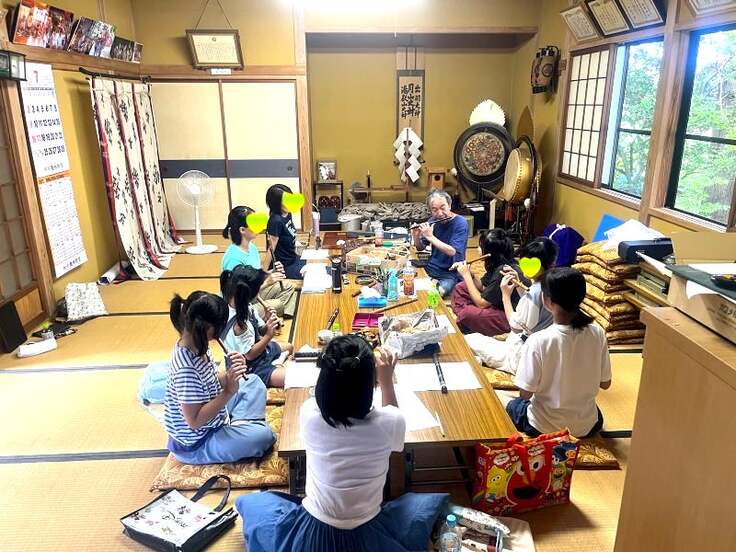 お菓子の差し入れがあったり、宮司様とのやりとり(こちらの画像の奥の方が宮司様です)も楽しそうで、こんなに地元の子どもたちが神様に関係する事を楽しんで熱心でいるって、素晴らしいなあとずっと感じていたんです。
