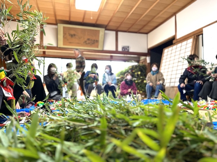 先日、READYFORさんでプロジェクトもしている三輪坐惠比須神社様で、福笹飾りのご奉仕をさせていただいたのですが、氏子の皆様に私の仲間も加わって、何百本もの福笹を作りました。