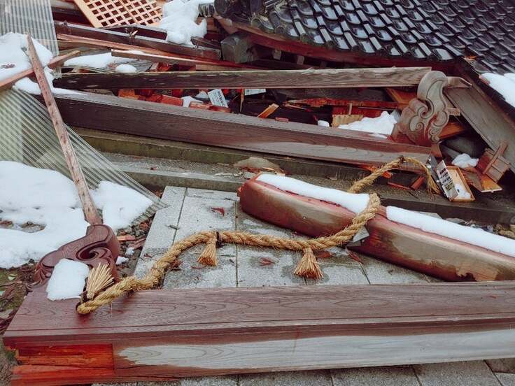 石川県奥能登珠洲市の、羽黒神社様の震災直後のご様子が「惨状」という一言と、数枚の画像で伝えられました。