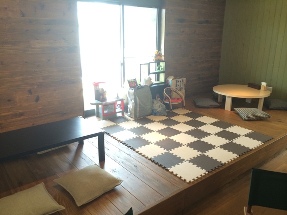 「ママに優しい店づくり」をモットーとしてキッズスペースを併設した小上がり席です。ママネットワークの口コミで広がりおかげさまで多くの家族に利用していただいています。トイレにはおむつ替えシートも設置しました。