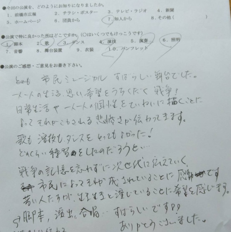 公演をご覧いただいた方々からは、「感動した」「涙が止まらなかった」などたくさんのお声をいただくことができました。