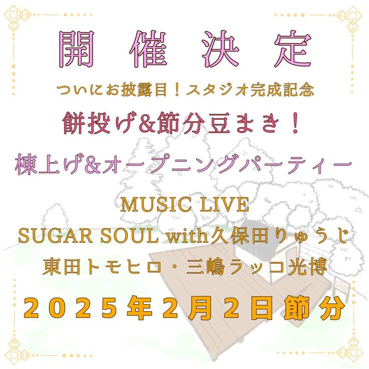 餅投げ&節分の豆まきと光栄なことに『SUGARSOUL』さん『東田トモヒロ』さんを迎えてミュージックライブなど企画できましたのでお時間ある方はぜひ遊びにいらしてください🎶
