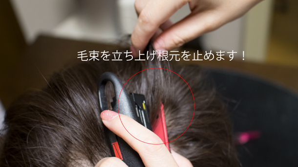 使い方は「ホチキスのようにパチッと挟むだけ」で簡単ヘアアレンジ。