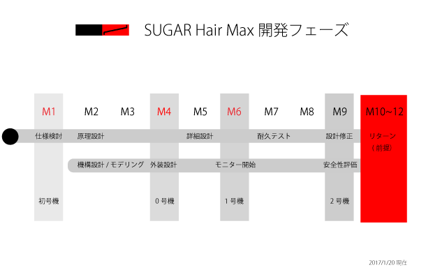 ※ リターンはクラウドファンディング終了後12ヶ月(2018年10月頃予定)で、Hair Maxを発送します。