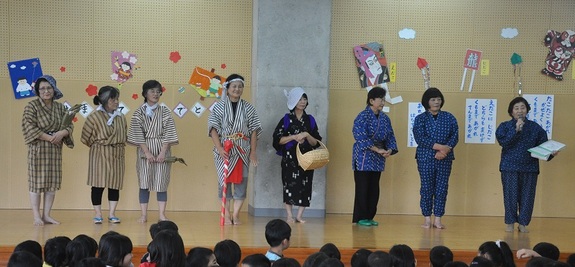 劇団「おばあQ」のメンバーは与那原町児童文化部長である85歳の知念節子さんをトップに、年少が62歳の女性会員8人で構成され、様々なバックグランドを持つ高齢者が、子どもたちに地域の歴史や物語を方言で披露することで高齢者と子どもたちが繋がる社会づくりの一つの活動となっています。