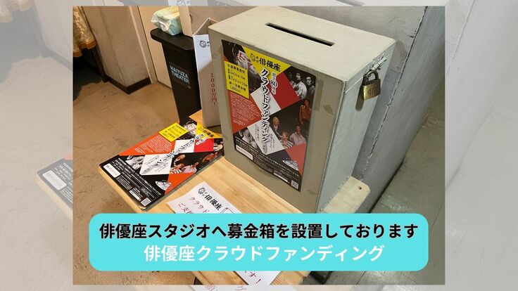 募金箱をご利用くださいましたお客様より「いいお芝居だった!頑張ってくださいね。」とお声掛けいただき、終演後には連日多くの皆様にご支援いただいております。ご来場の際には、是非ご利用ください。