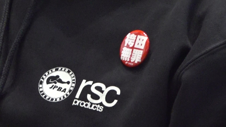 ボクシング協会から贈呈された支援バッジを胸に、弁護団は裁判所へと向かいました。