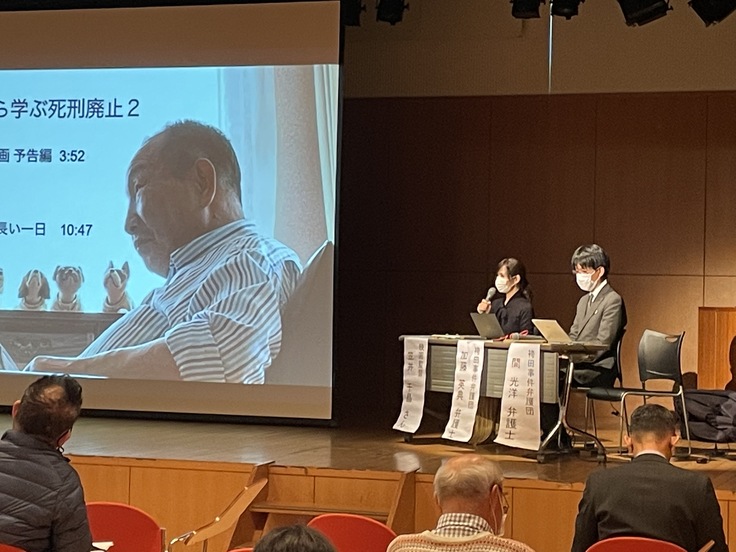 冒頭の40分ほどお時間をいただき、長年、私が袴田さんと関わってきた中で「死刑囚」という存在について感じたことを、私自身が撮影・編集した映像を交えながらお話させて頂くことができました。