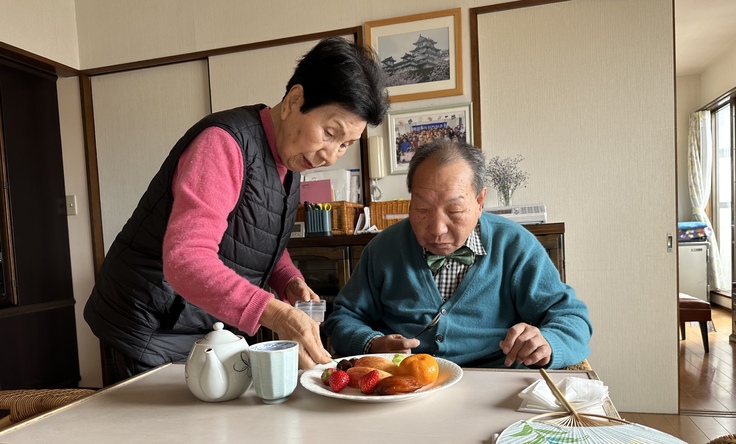 ▲「再審開始決定」確定翌日の袴田さん(浜松市の自宅にて)