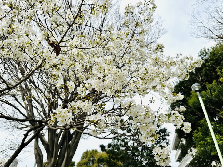 袴田さんのお宅を後にして、近所の公園を通りかかった時、真っ白な桜の花が満開に咲き誇っていました。