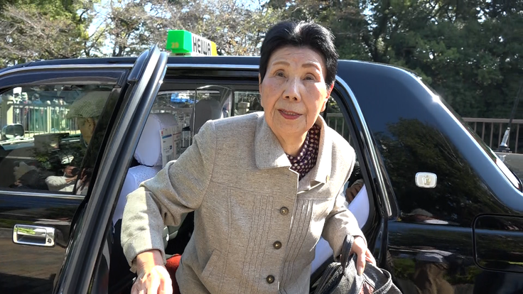 ▲裁判所に到着した秀子さん(午前10時前)