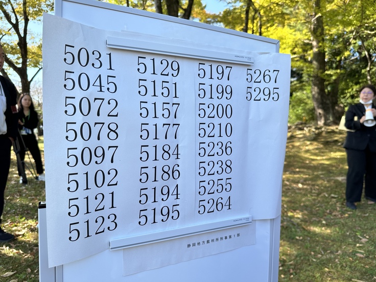 整理券配布からしばらく経った9時45分。裁判所の隣にある駿府公園内に、当選者の番号が掲示されました。