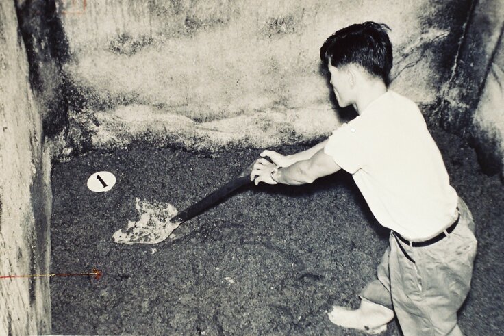 ▲味噌タンクの中の「5点の衣類」発見状況