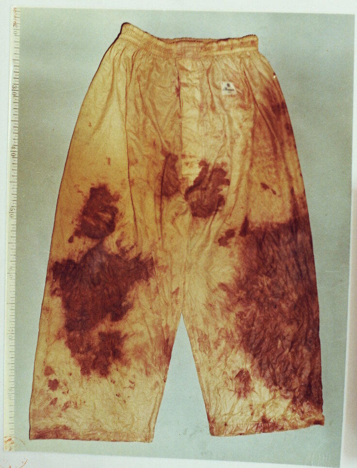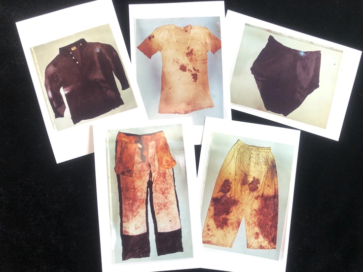 発見後に捜査員によって撮影された写真の通り、「5点の衣類」の血痕は「赤く」見えます。