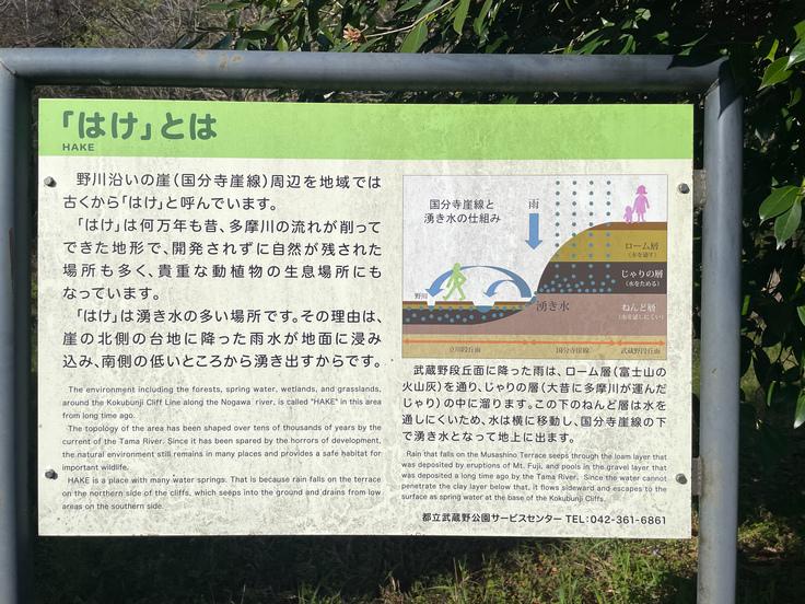 古多摩川の流路が武蔵野台地10万年以上の歳月を削り取ったことで生まれた地形を、土地の人たちは、昔から“はけ”と呼んできました。国分寺崖線と名付けられてからも、市民は親しみを込めて“はけ”と呼んでいます。