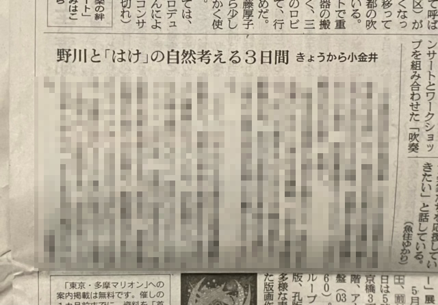 朝日新聞 野川と「はけ」の自然を考える3日間