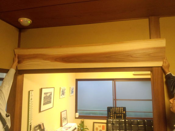 地元の工務店さんにご協力いただいた、地元の銘木「山武杉」の一枚板です!