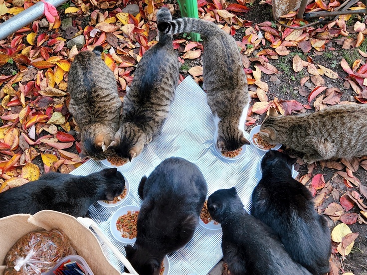 地域猫たちへのごはんやりはシフト制で行い1日2回で365日、休むことはありません。
