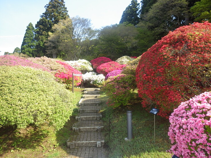 赤やピンク、一部の白いツツジが咲きそろってきました。
