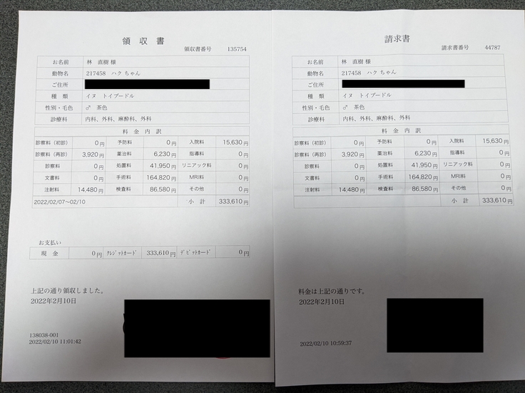 6月の支払いは無理だったので分割支払いにし、6月に一括返済したいと思っております。残りの79,990円は次回の抜糸、血液検査、今後の定期的な検診の費用に充てさせていただければ幸いです。