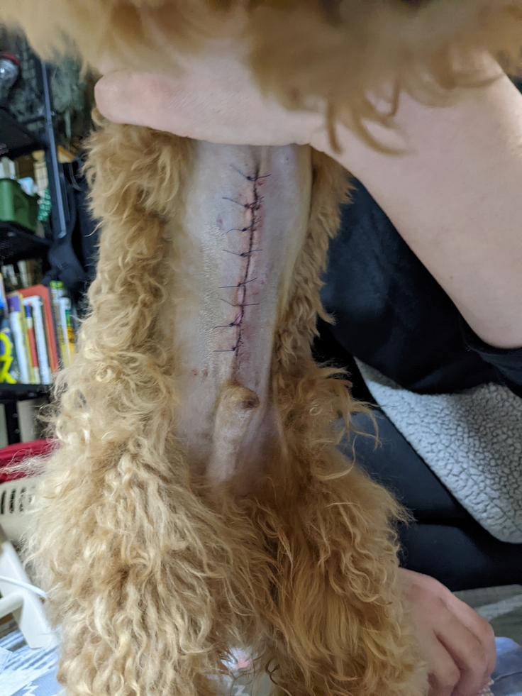 ハクの手術後の痕です。痛々しいですが、今は傷の痛みもないようで元気にすごしております。