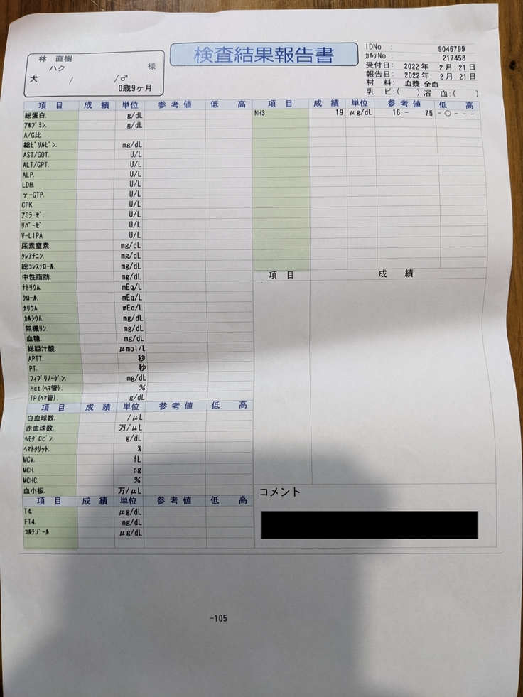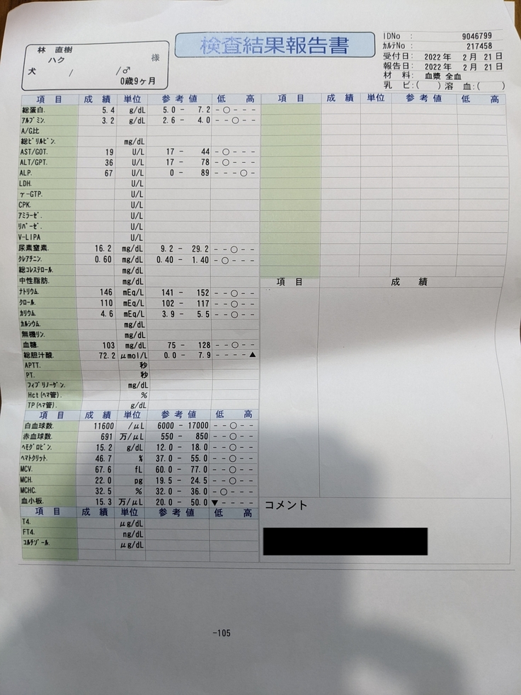 総胆汁酸は肝臓がまだ完全ではないので数値は高いですが術後の許容範囲内だそうです。心配していた血糖値もアンモニア数値も問題ありませんでした。