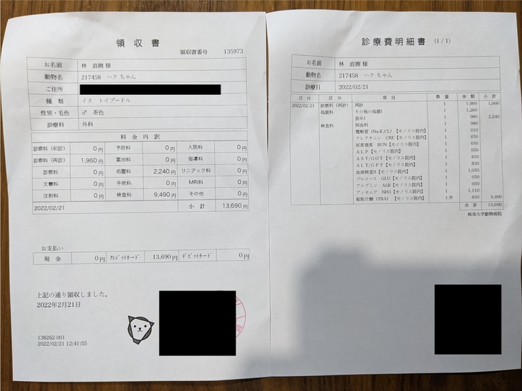 ※病名、獣医師名は個人情報の都合により伏せさせていただきます。
