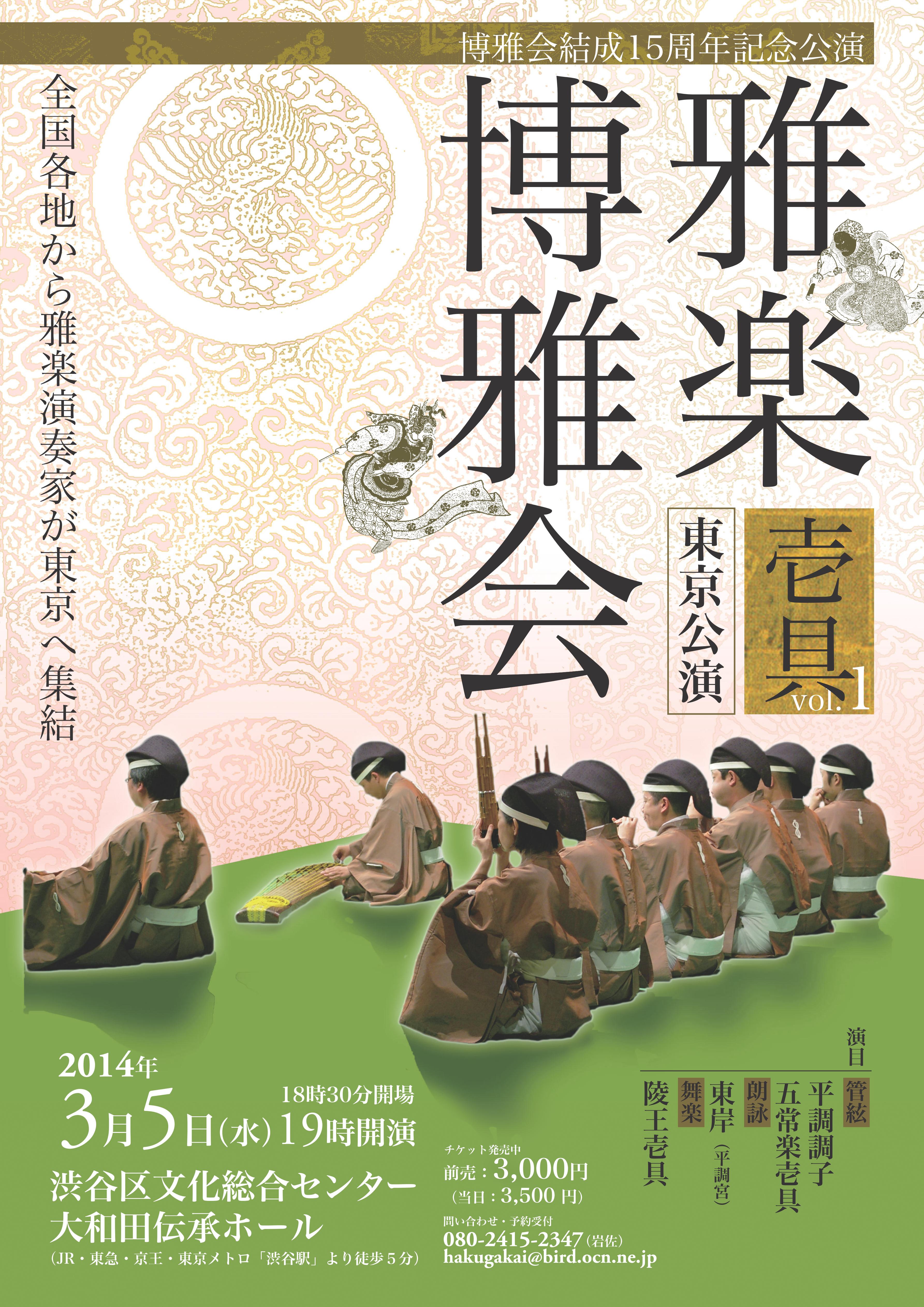 今回は関西の西宮ですが、来月5日に東京・渋谷で雅楽公演を開催いたします。