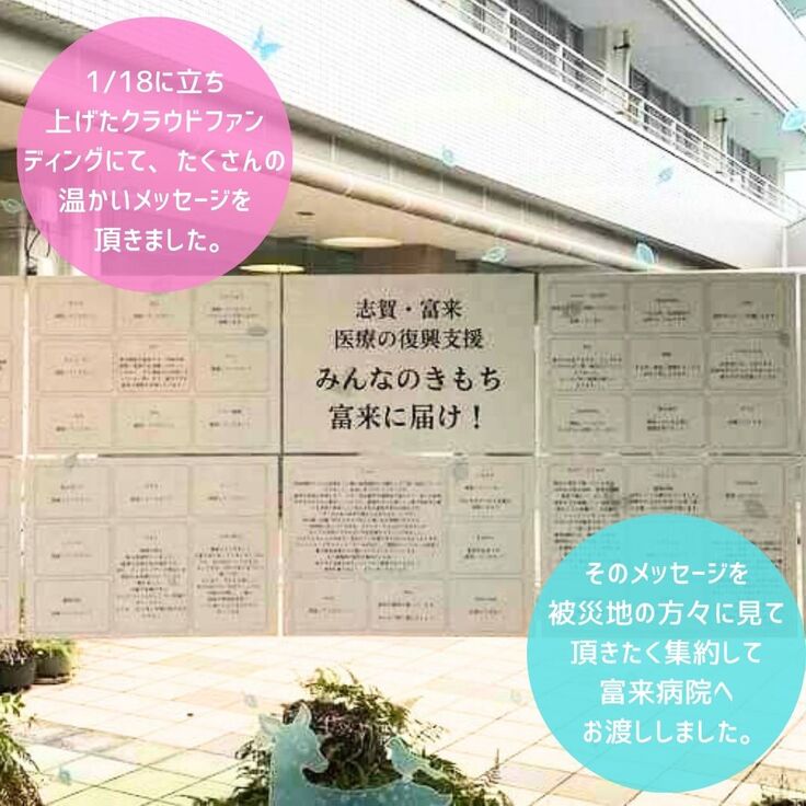 震災のあと、当院は被害の大きかった志賀町の医療の復興を目的としたクラウドファンディングを立ち上げ、現在までに多くの支援が集まっています。