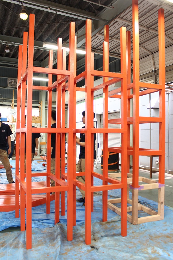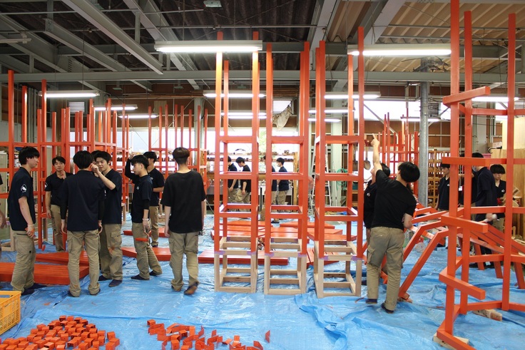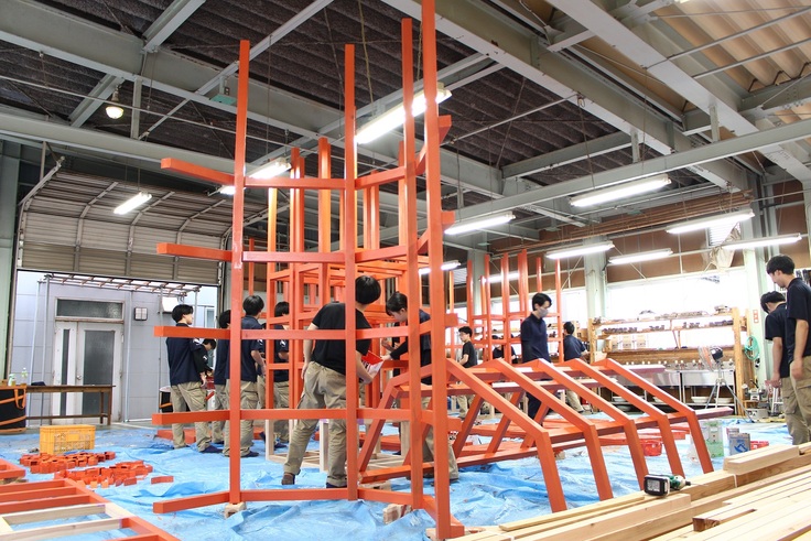 什器・土台の製作が新潟工科専門学校生徒さんの手で順調に進んでおります。