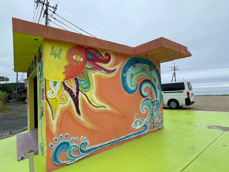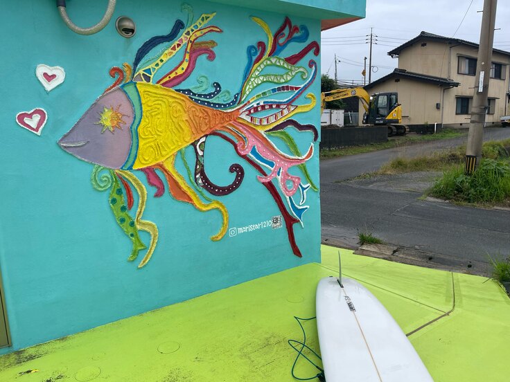 しかも、ワタシがこれからやろうとしていたモルタルを使って、こんなトロピカルネイチャー🐡なdrawingをしてくれる方でした😊( ご神水を使って陶芸もされてます😊)