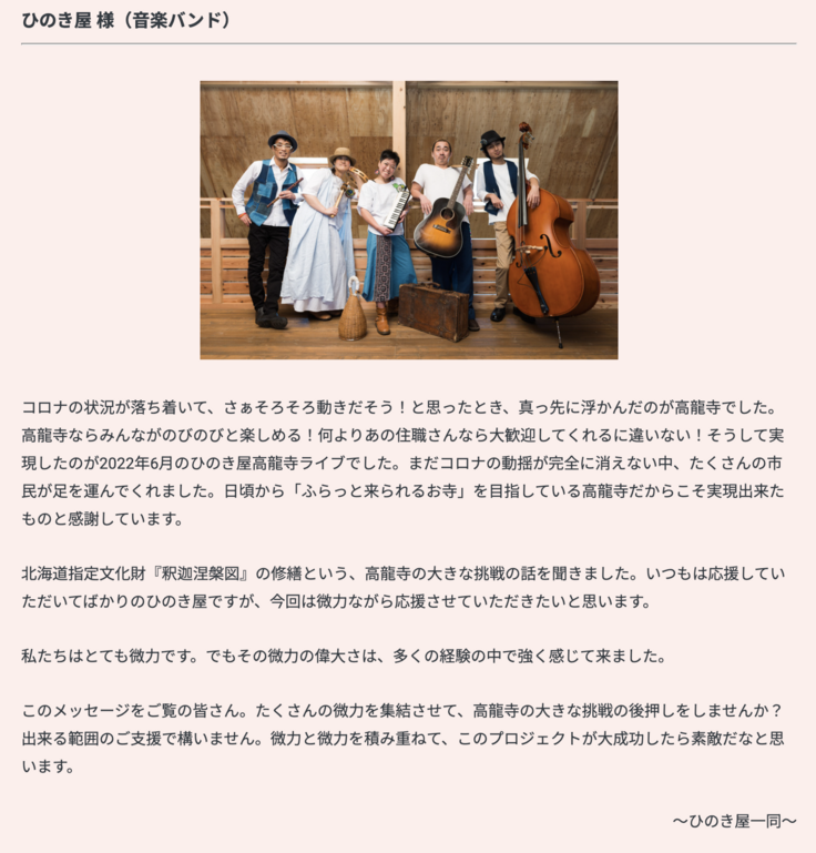 このメッセージをご覧の皆さん。たくさんの微力を集結させて、高龍寺の大きな挑戦の後押しをしませんか?出来る範囲のご支援で構いません。微力と微力を積み重ねて、このプロジェクトが大成功したら素敵だなと思います。